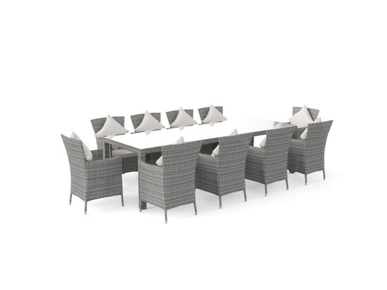 Rattan sintetico e vetro temperato per il piano fanno di Ceres XXL un must per gli amanti dello stile. Questo modello può accogliere ben 10 commensali grazie anche al tavolo di 2,80 metri di lunghezza. La linea Ceres è disponibile in ben sette varianti, dalla versione XXS con 2 poltroncine e tavolo 70 x 100 cm; fino alla versione MAX con un tavolo di 2,30 x 1,60 metri. La soluzione ideale per arredare con stile il giardino, il ristorane o la terrazza.Un materiale innovativo e facile da mantenere