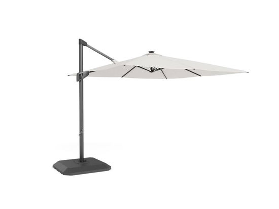 L'ombrellone LOUVRE dal design estremamente moderno con illuminazione a LED non solo vi offre la possibilità di sfuggire ai raggi del sole in estate. Appena il sole tramonta, goditi la romantica illuminazione a LED nel tuo giardino!