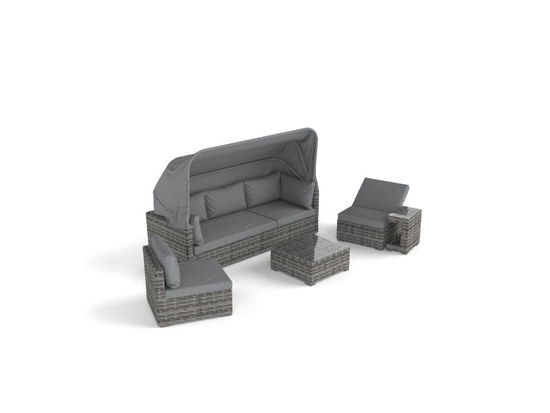 - 1x Divano a tre sedute in rattan con cappotta / con schienale reclinabile
