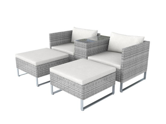 Il set di divani in rattan sintetico a 5 pezzi Venezia della City Collection si adatterá perfettamente alle vostre esigenze individuali e vi consentirá di creare sempre nuovi ambienti. Potrete usare il gruppo come un lungo divano, un comodo letto matrimoniale con schienale, un divano con chaise longue, 2 letti singoli con schienale o come 2 posti con poggiapiedi aggiuntivi. Ogni variazione è possibile. Inoltre il set comprende un tavolo da tè coordinato con un elegante piano in vetro da utilizzare anche come piccolo contenitore. Questo gruppo accogliente attirerá l'attenzione di tutti i vostri amici e parenti! Possiede una struttura in robusto alluminio e una copertura in rattan grigio sfumato. Cuscini spessi e cuscini posteriori completano l'accogliente gruppo di sedute. Il tavolo da tè su misura può essere posizionato tra le opzioni di seduta e lateralmente, in modo che ci siano molte possibilità di impostazione. Multifunzionale e incantevole, il gruppo in rattan sintetico Venezia arrederá il vostro spazio esterno e vi inviterá alla riflessione! Il rivestimento dei cuscini di questo set è realizzato in 100% poliacrilico, mentre il materiale di imbottitura è in schiuma.