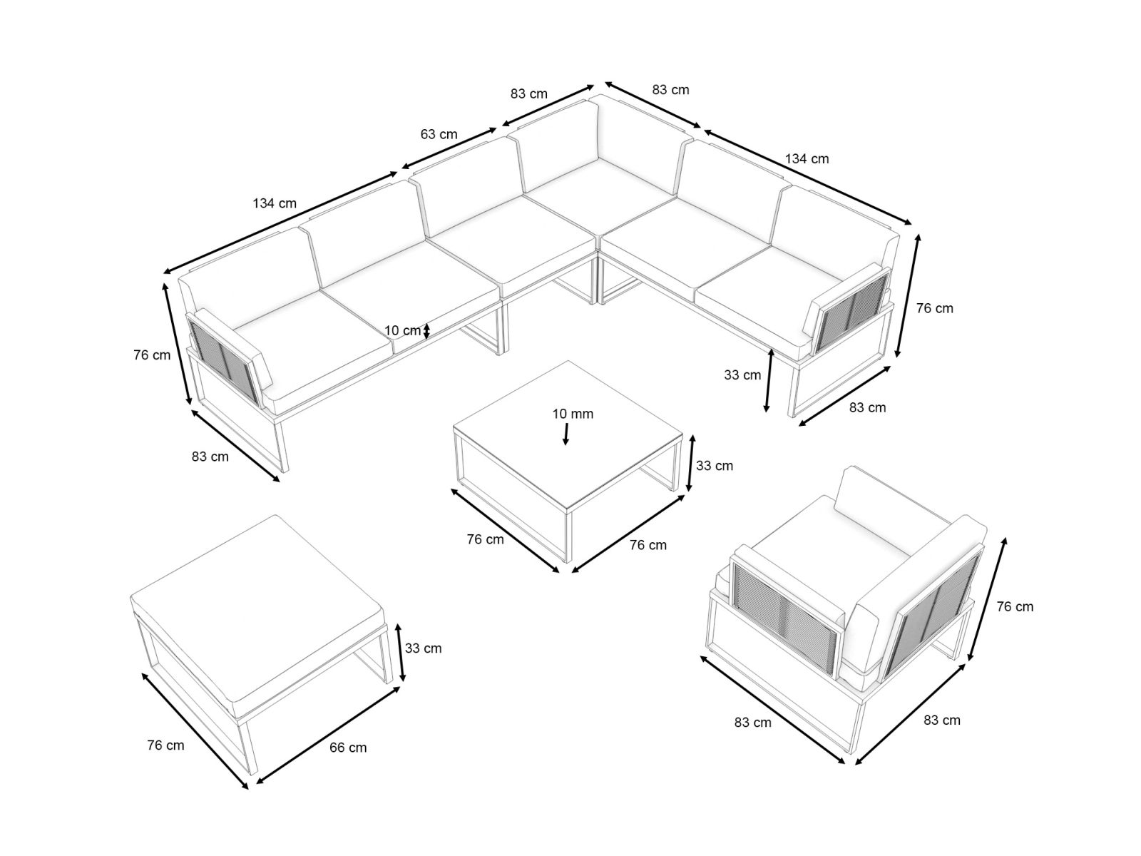 - 1x Poggiapiedi / pouf Cuscino incluso