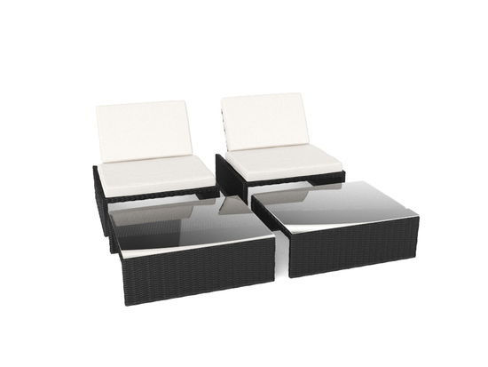 - 2x Tavolino da salotto / Poggiapiedi / pouf in polirattan - 2x Piani in vetro/ 2x Cuscini