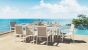 Godetevi un’estate indimenticabile con i vostri migliori amici! L‘esclusivo set da pranzo Santorini XL della Collezione Ilios comprende un tavolo estraibile con ripiano in vetro grigio e otto sedie impilabili con braccioli, che presentano due strati di textilene con schiuma ad asciugatura rapida. Il materiale moderno offre molti vantaggi: è resistente allo strappo, traspirante, elastico e anche resistente agli agenti atmosferici - insomma l'arredamento perfetto per l'uso esterno! La sporcizia può essere facilmente rimossa con un panno umido. Le strutture del tavolo e delle sedie impilabili sono in alluminio. Se aspettate più ospiti, potrete semplicemente estendere il tavolo estraibile, se necessario. Abbinato al piano in vetro grigio chiaro, il tessuto textilene è presentato in grigio chiaro, mentre l'alluminio è bianco. Questa accattivante combinazione di colori conferisce un tocco nobile a questo set da esterno. Offriamo il set da pranzo Santorini della collezione Ilios sia nella taglia L con sei sedie che nella taglia XL con otto sedie.