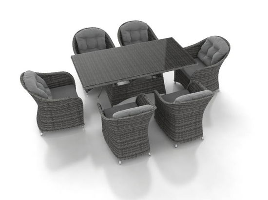 Il set da pranzo di Velia L è composto di sei comode sedie e un tavolo rettangolare di 150 x 90 x 75 centimetri. Le sue caratteristiche ne fanno il prodotto ideale per una bella cena gli amici o per esempio per tenere incontri di lavoro. Velia L è inoltre un’ottima soluzione per arredare la zona esterna di un hotel o una spa.